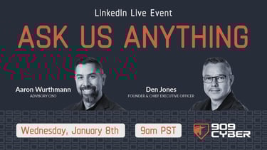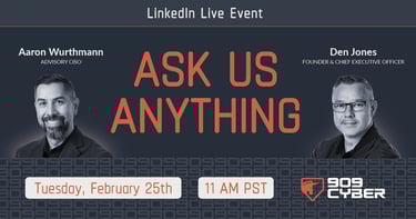 Cyber909's first-ever podcast with host Den Jones with guest and partner in crime at 909Cyber, Advisory CISO Aaron Wurthmann. Cyber909 is your source for wit and wisdom in cybersecurity and beyond.
