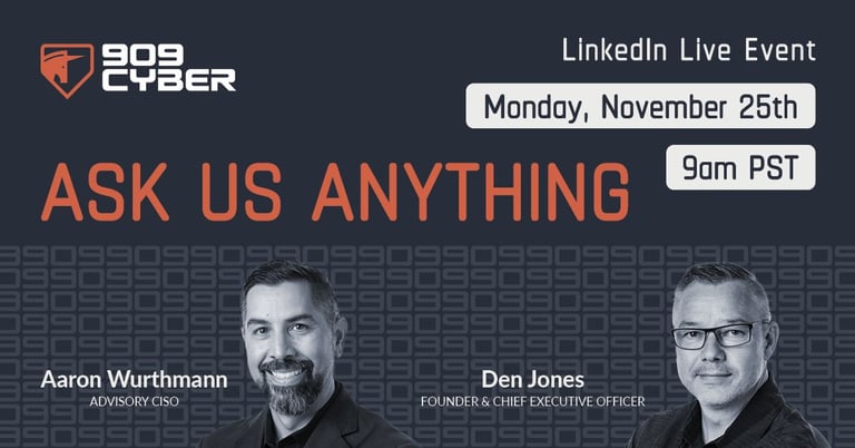 Submit your questions in advance by emailing AskUs@909Cyber.com